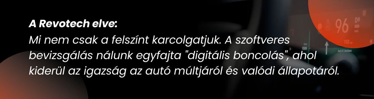 A modern autózásban a használt autó vásárlás előtti átvizsgálás már nem lehet teljes a szoftveres háttér ellenőrzése nélkül. Legyen szó a környezetvédelmi rendszerek eltitkolt kiiktatásáról, maszkolt hibakódokról vagy egy kártékony „chip-tuningról”, a Revotech technológiája láthatóvá teszi a láthatatlant.