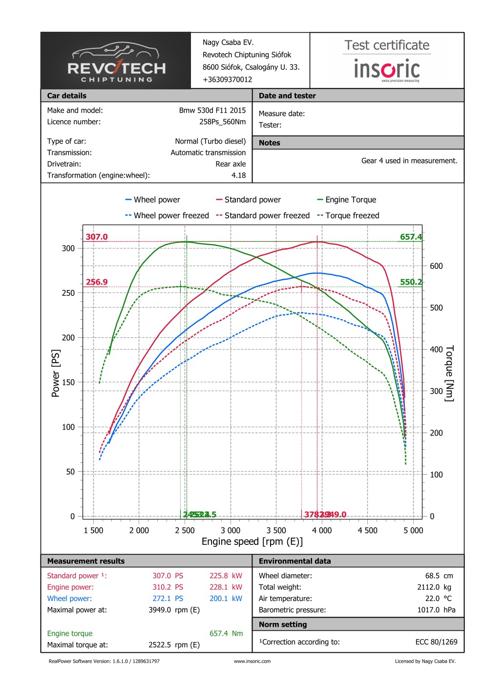 Mért gyári adatok